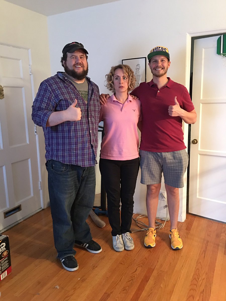 Joey clift, center, with how did this get played hosts heather anne campbell and nick wiger.